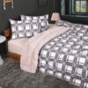 - Alt Kısım: %100 Pamuklu Kış Konforu: Nevresimin yatağa temas eden alt yüzeyi, tamamen doğal ve nefes alabilen pamuk kumaştan üretilmiştir. Pamuğun bilinen en önemli özelliği olan sıcak tutma kapasitesi sayesinde, soğuk kış gecelerinde ekstra konfor ve yumuşaklık sağlar. Terletme yapmayan bu yapı, dört mevsim ideal nem dengesini korur.