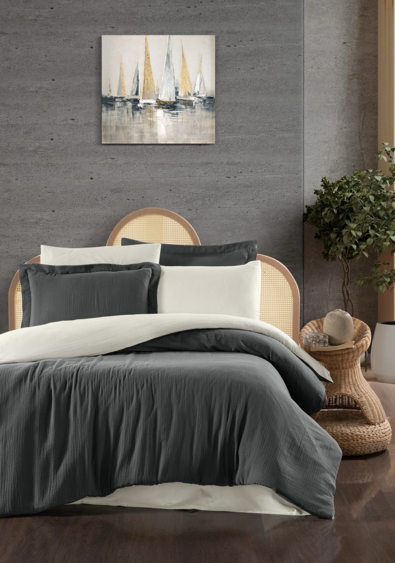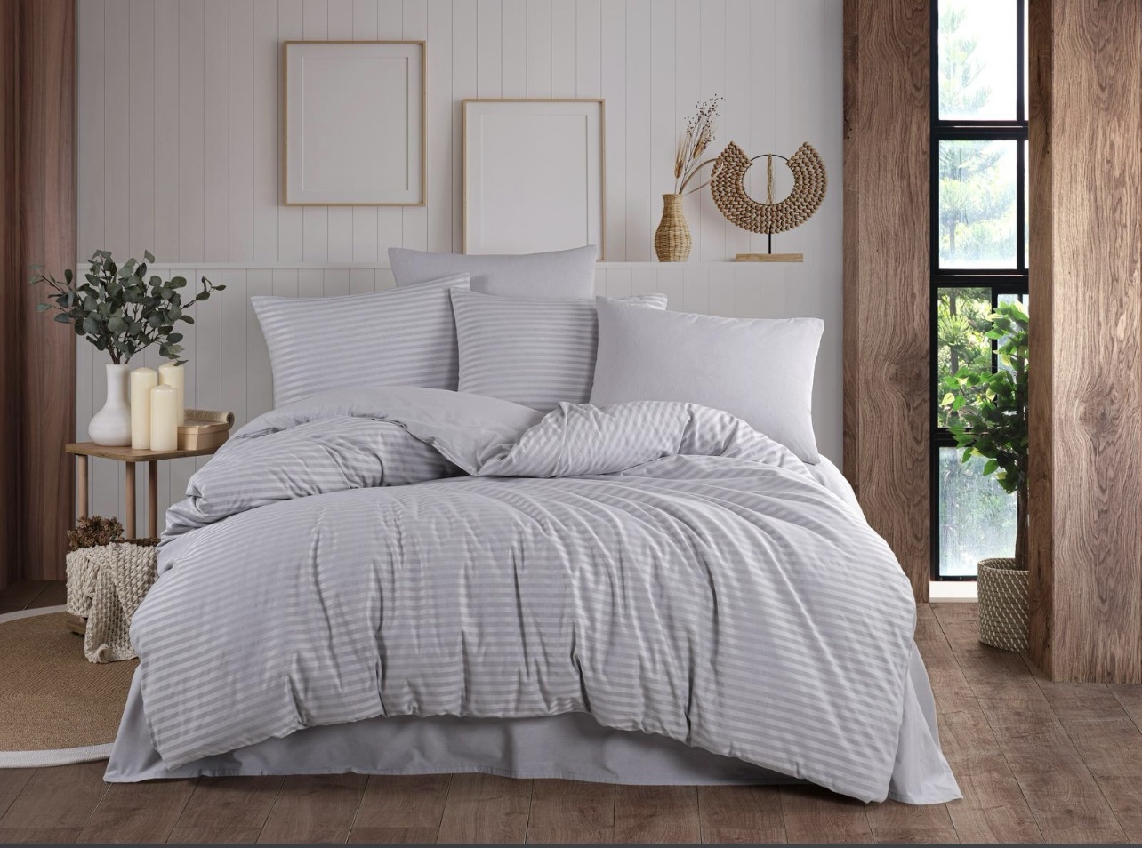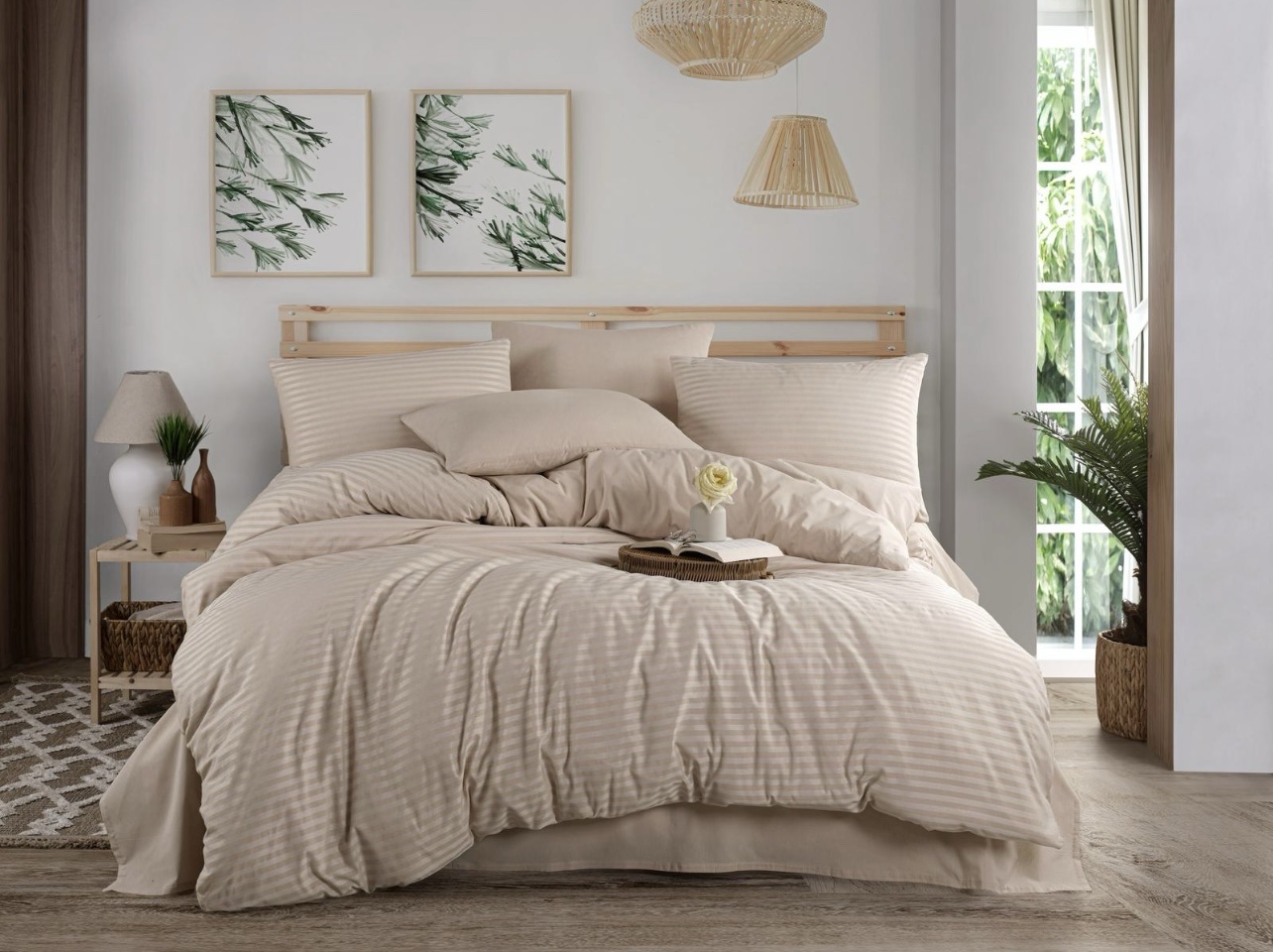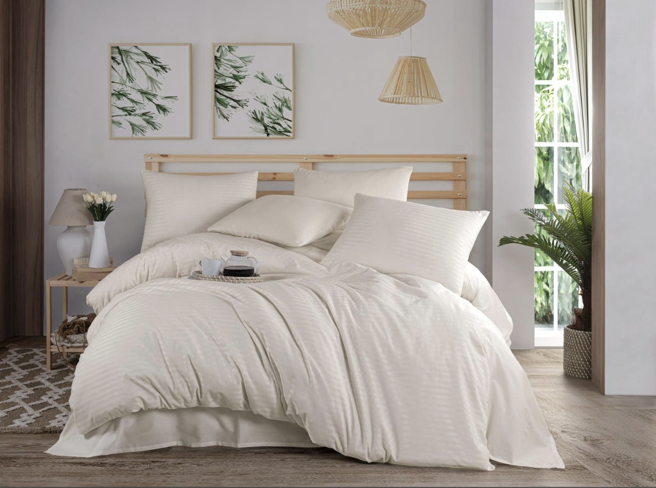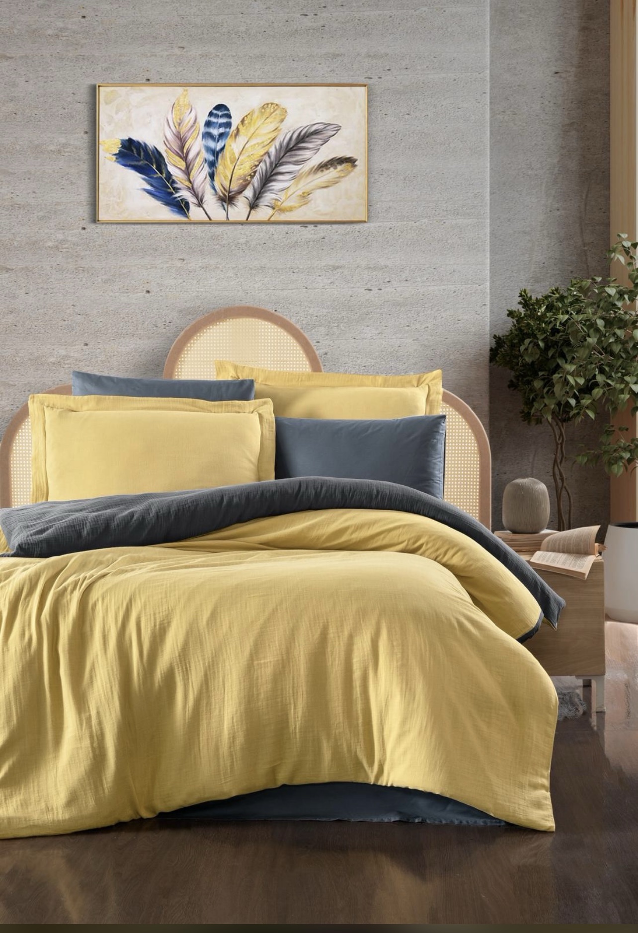 - Pürüzsüz ve Zarif Doku: Özel saten dokuma sayesinde, kumaş ipeksi ve pürüzsüz bir yüzeye sahiptir. Bu parlak görünüm, yatak odanıza anında şık ve sofistike bir hava katar.