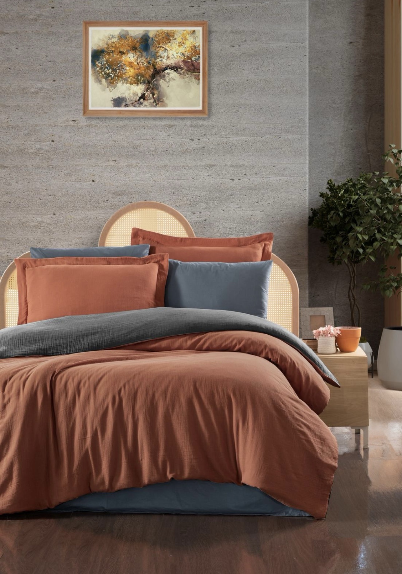 Yatak odanıza zarafet katacak, parlak ve pürüzsüz dokusuyla lüks bir his sunan Pamuk Saten Nevresim Takımı.