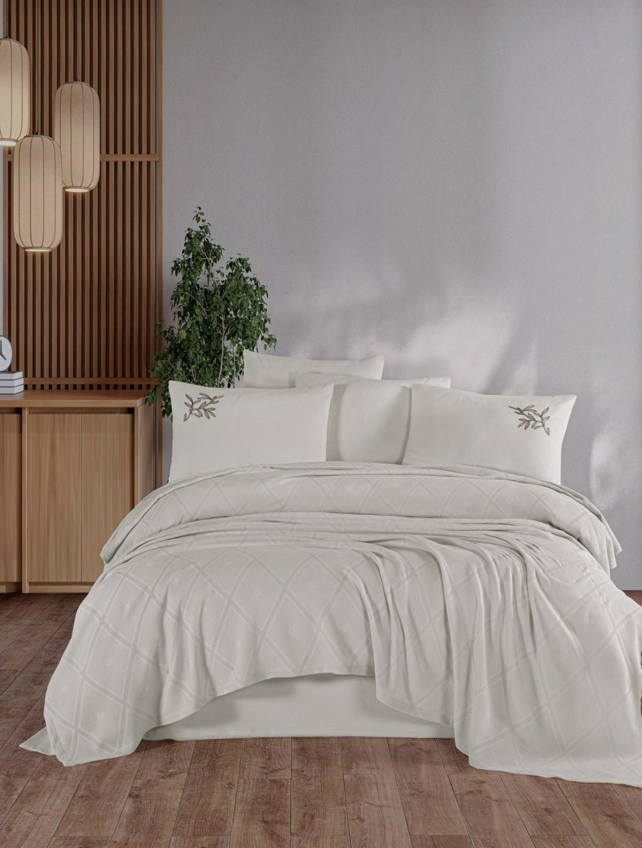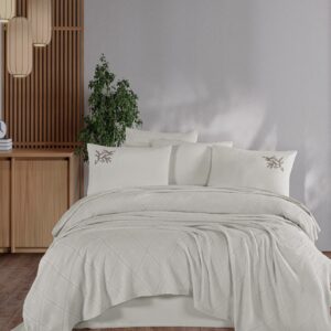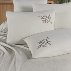 Not: Bu nevresim takımı, yüksek iplik sayısına sahip pamuk ipliği ile özel saten tekniği kullanılarak dokunmuştur, bu sayede hem pamuğun doğallığını hem de satenin şıklığını birleştirir.