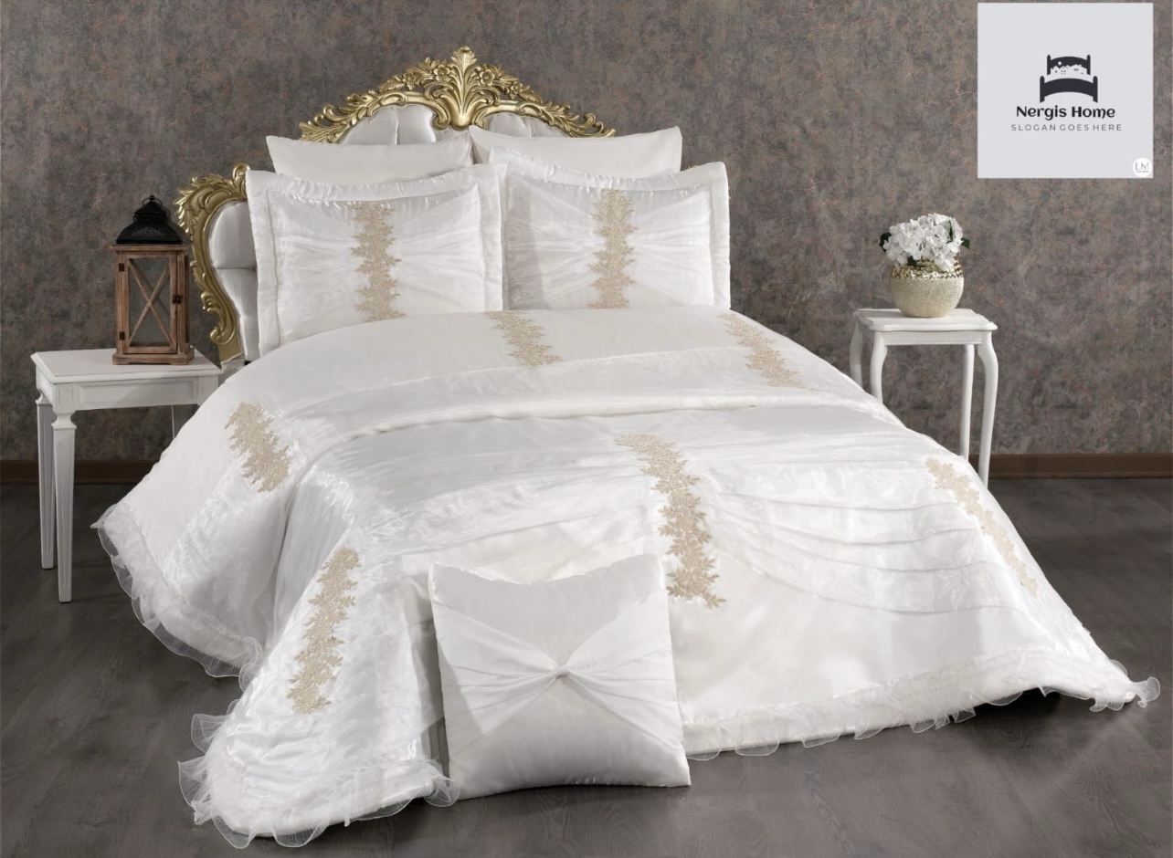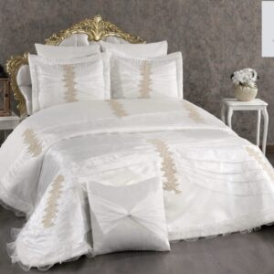 Yatak odanıza zarafet katacak, parlak ve pürüzsüz dokusuyla lüks bir his sunan Pamuk Saten Nevresim Takımı.